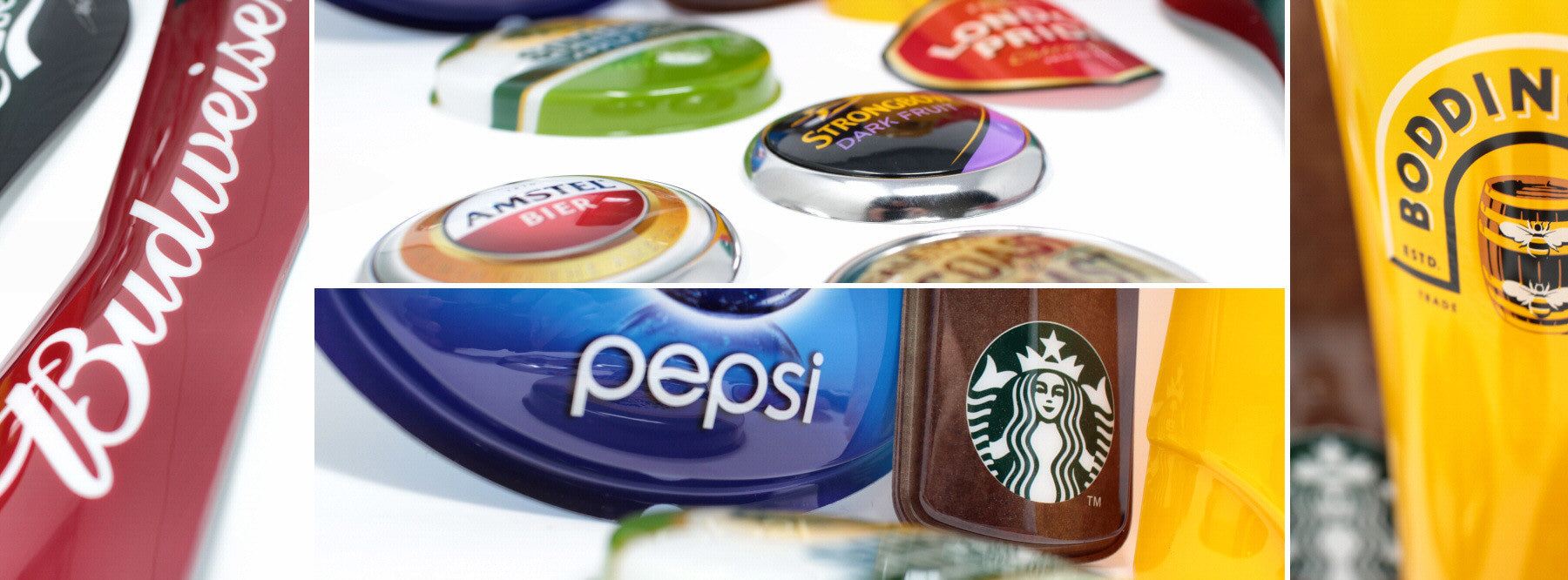 Somos el principal fabricante independiente de personalización para dispensadores de bebida y decoración frontal de barras, incluyendo columnas y tiradores de bebidas.